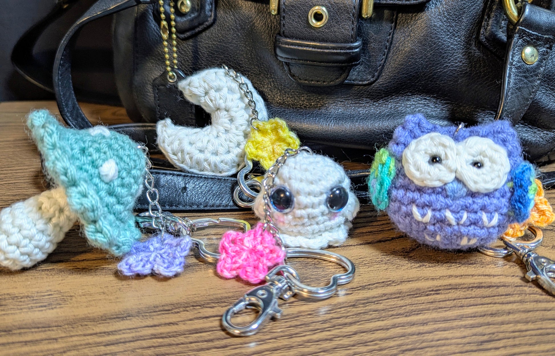 Crochet Glow-in-the-Dark Owl Bag Charm – The Luminous Night Collection – Made to Order