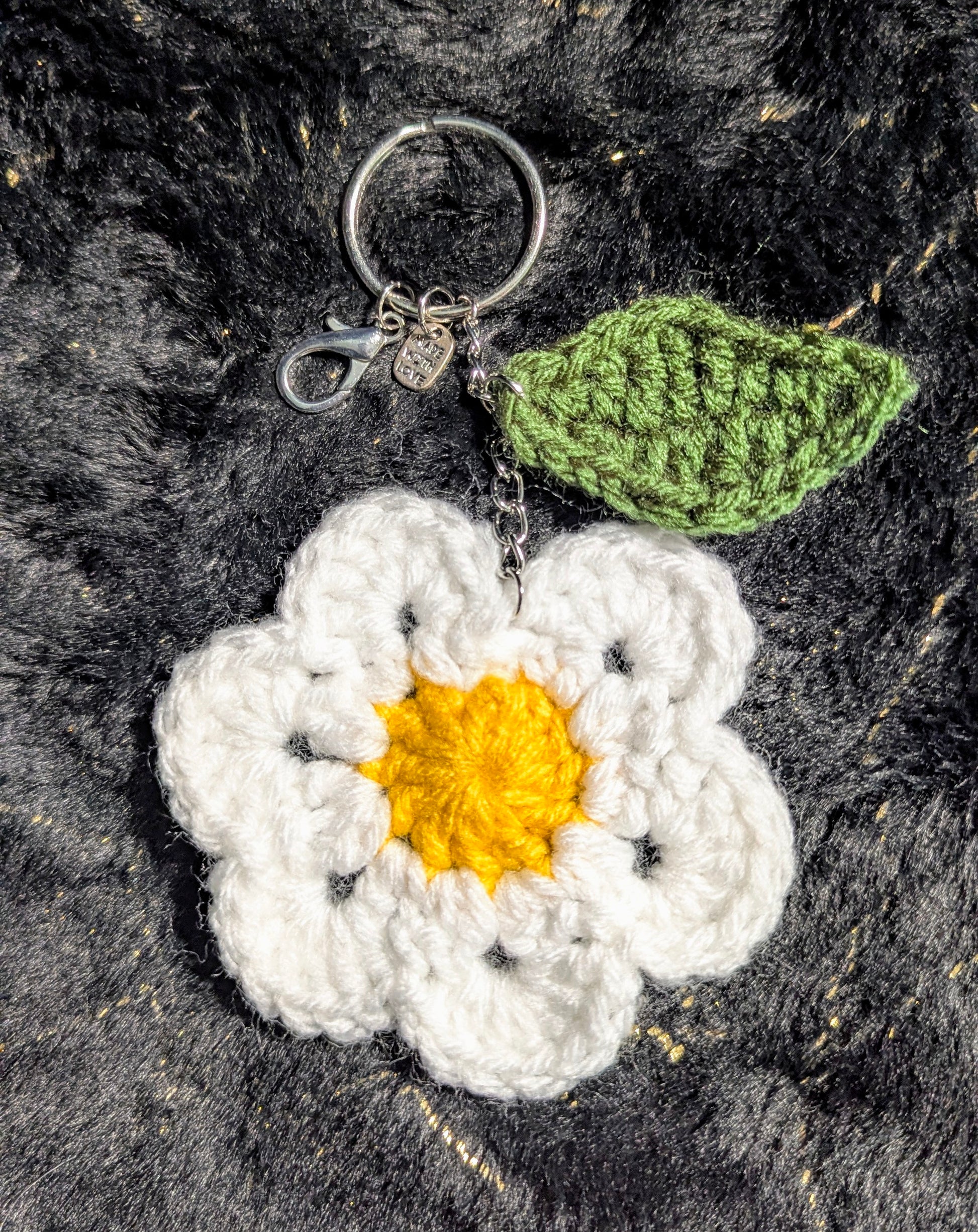 Enhance the beauty of your bag with our handmade crochet daisy bag charm. The delicate and intricate design adds a touch of elegance and sophistication to any accessory. Made with love and care, this charming bag accessory is the perfect way to elevate your style.
