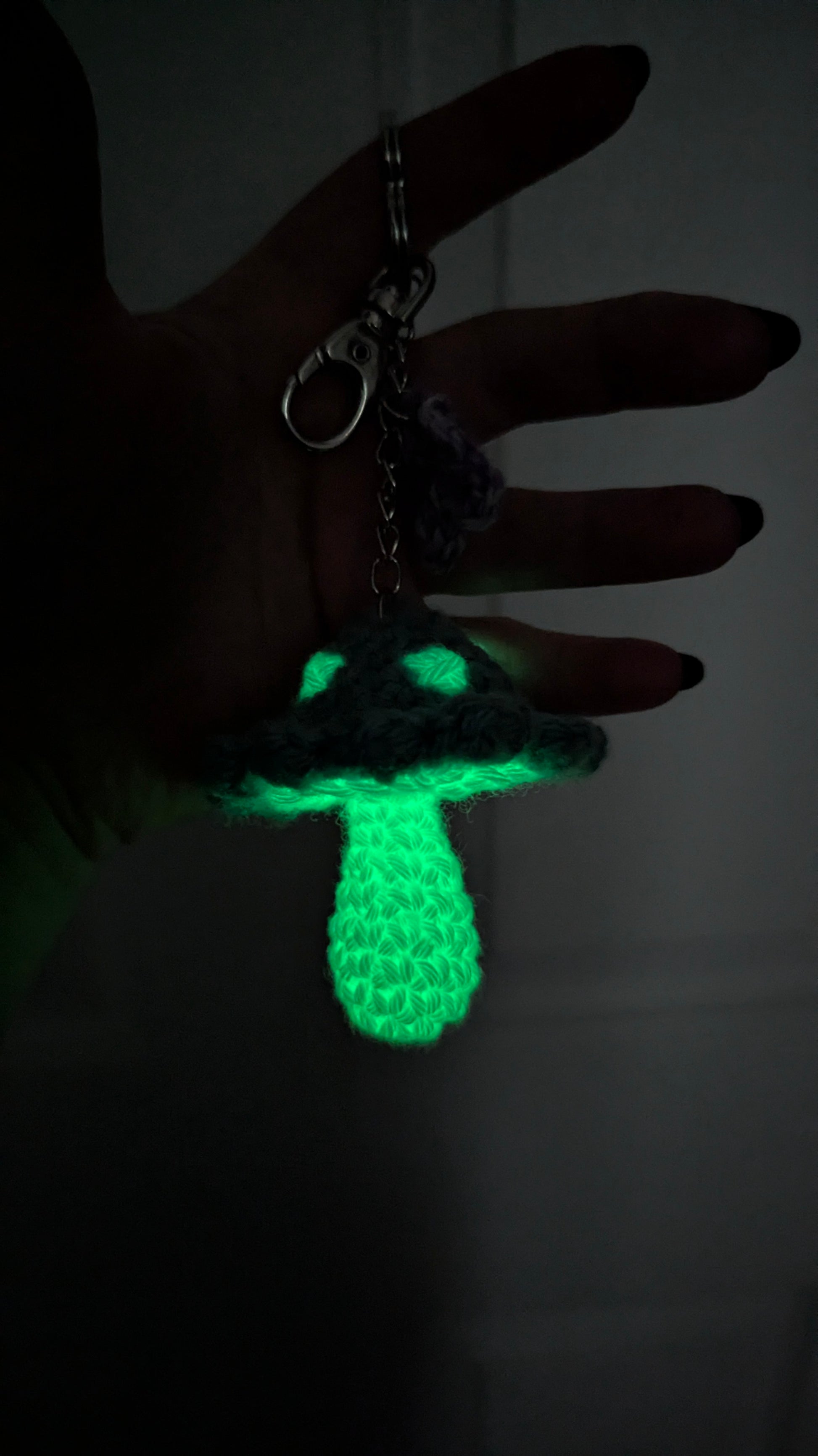 Straight from a magical moonlit forest, this handmade crochet mushroom bag charm glows softly in the dark for a touch of woodland whimsy. Perfect for nature lovers, fairy tale fans, and those who like their accessories a little enchanted.