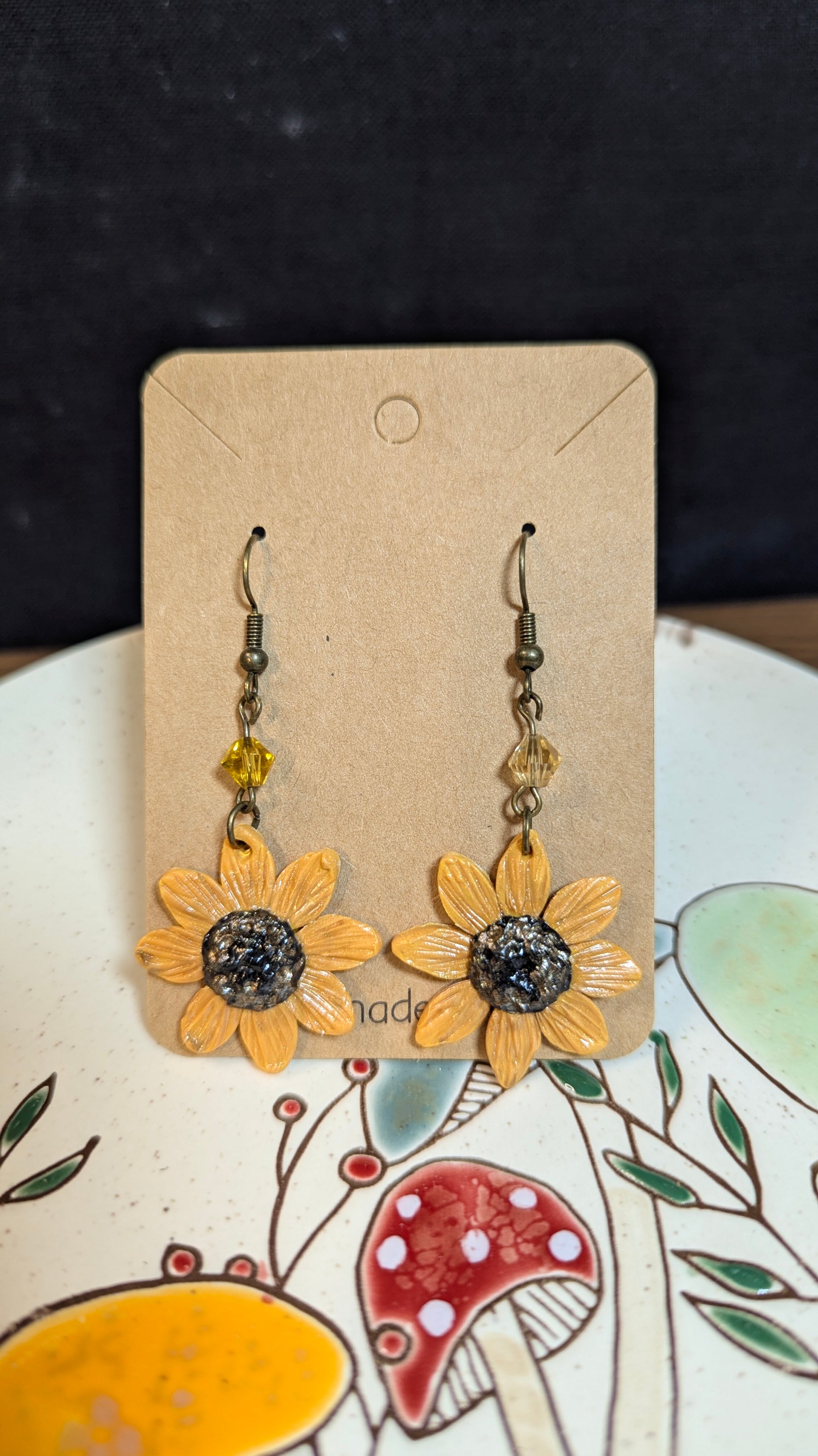 Bright, bold, and full of life — these handmade polymer clay sunflower earrings capture the warmth of late summer early fall in every detail. Crafted with golden yellow petals and a rich brown center, each bloom is hand-painted and glazed for extra durability and a subtle, lasting shine.